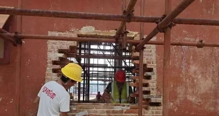 吴川学宫(大成殿)“菠萝格”红木大梁安装